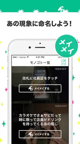 メイメイ -アレのこと何て呼ぶ?(以下、メイメイ)は、「電話の時だけお母さんの声が高くなる」「カラオケでさぁサビだって時に限って店員がドリンクを持ってくるあの感じ」など、多くの人が経験しがちなあるある現象に名を付けたり、他ユーザーに名を付けてもらったりする無料ソーシャルサービスです。
